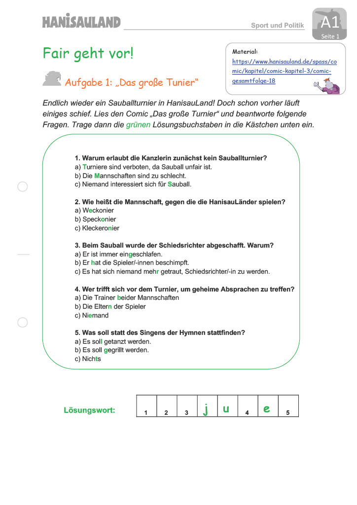 Klassenstufe: Klassen 3/4 und 5/6/7/8 Fächer: Deutsch, Sachunterricht, Gesellschaftskunde, Politik, Geschichte, Sport, Vertretungsstunde Material: Lehrkräfteinformationen, Arbeitsblätter Grundschule und Sekundarstufe I mit Lösungsblättern