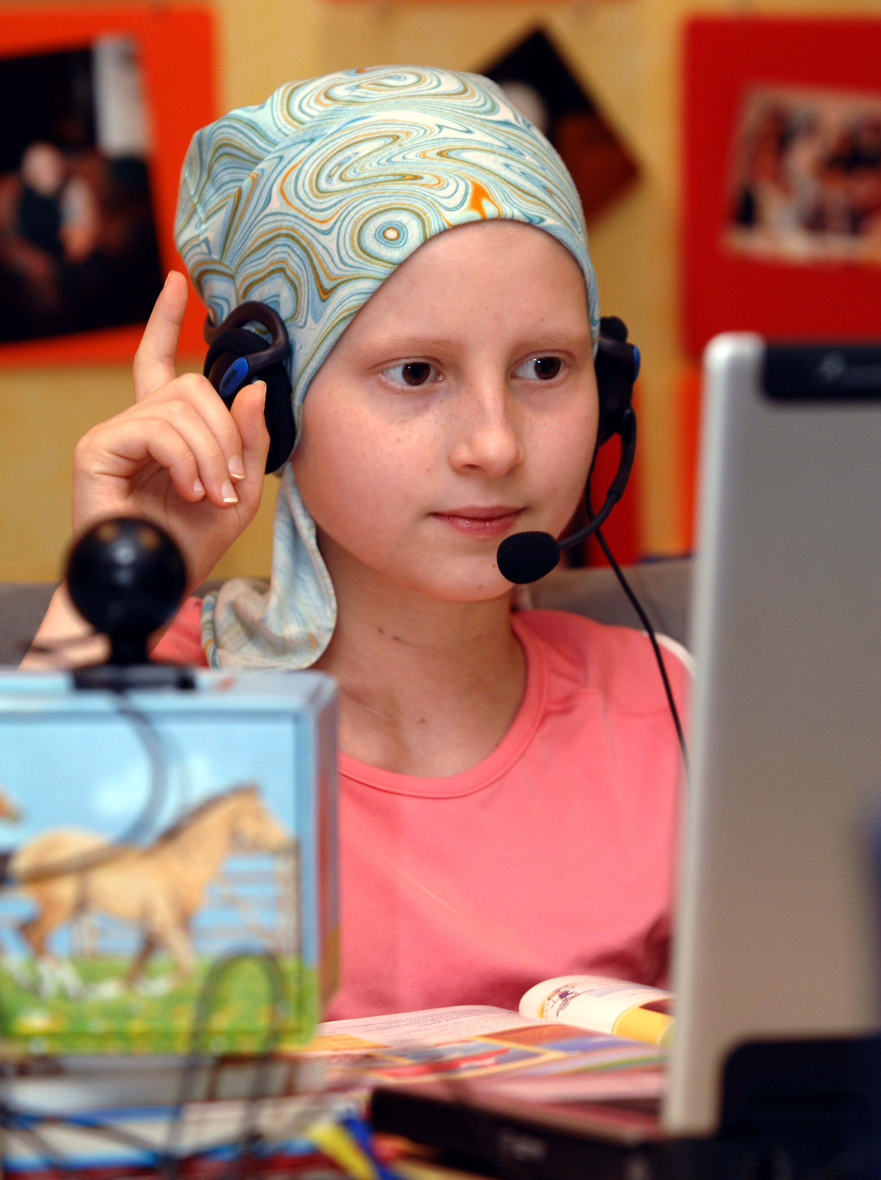 Die elfjährige Dana nimmt trotz ihrer schweren Krankheit per Webcam und Headset von zuhause aus am Unterricht teil und bleibt so mit ihrer Klasse verbunden.