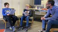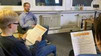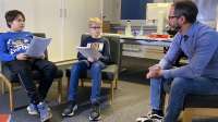 Der Medienexperte Matthias Heinen von klicksafe verrät den Kinderreportern Tipps, wie man Fake News erkennen kann.