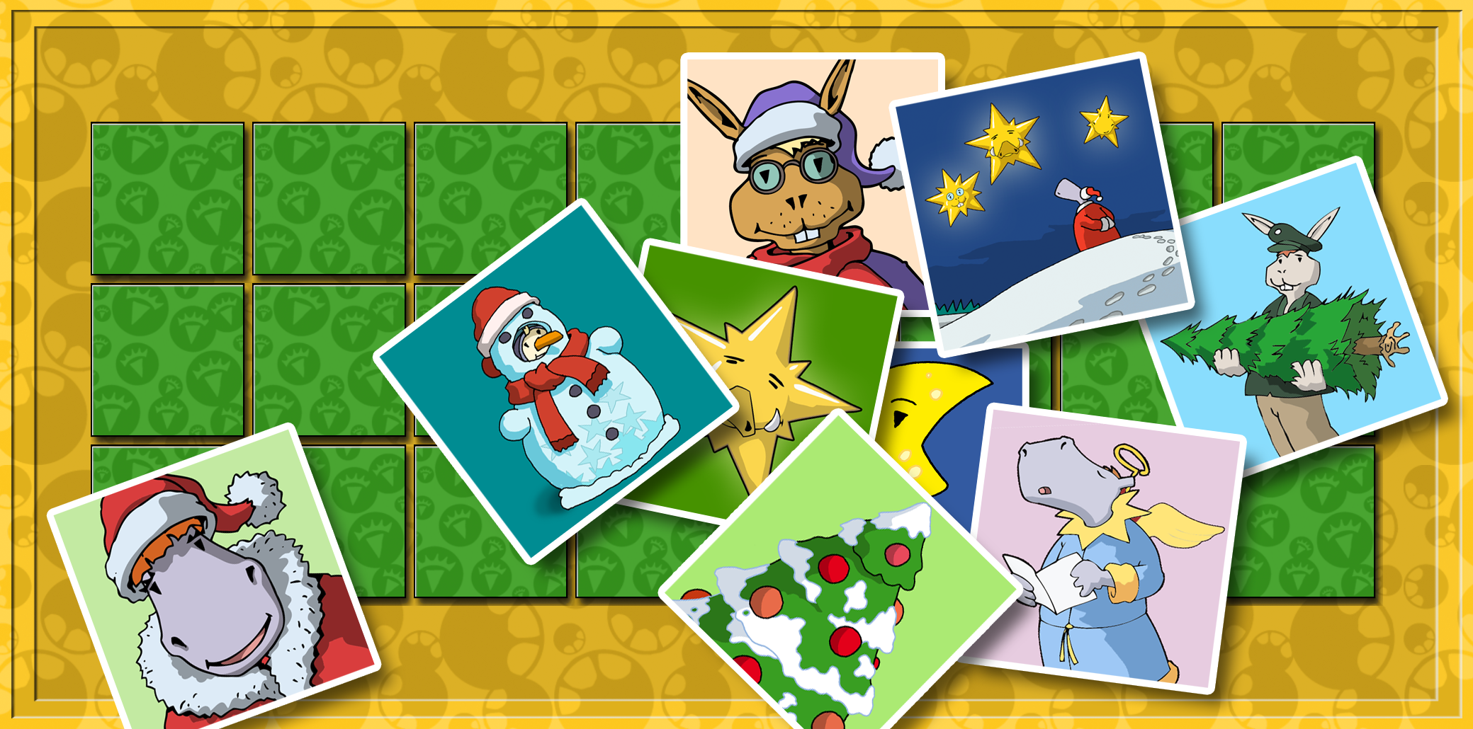 Und hier kannst du ein HanisauLand-Weihnachtsmemo selber machen. Einfach anklicken, jeden Bogen zwei Mal ausdrucken, ausschneiden - fertig!